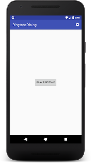 Продемонстрирую создание подобного диалога на примере простого приложения: на одном экране есть кнопка "Play ringtone", нажатие на которую проигрывает установленный в настройках рингтон, и ссылка на экран с настройками: