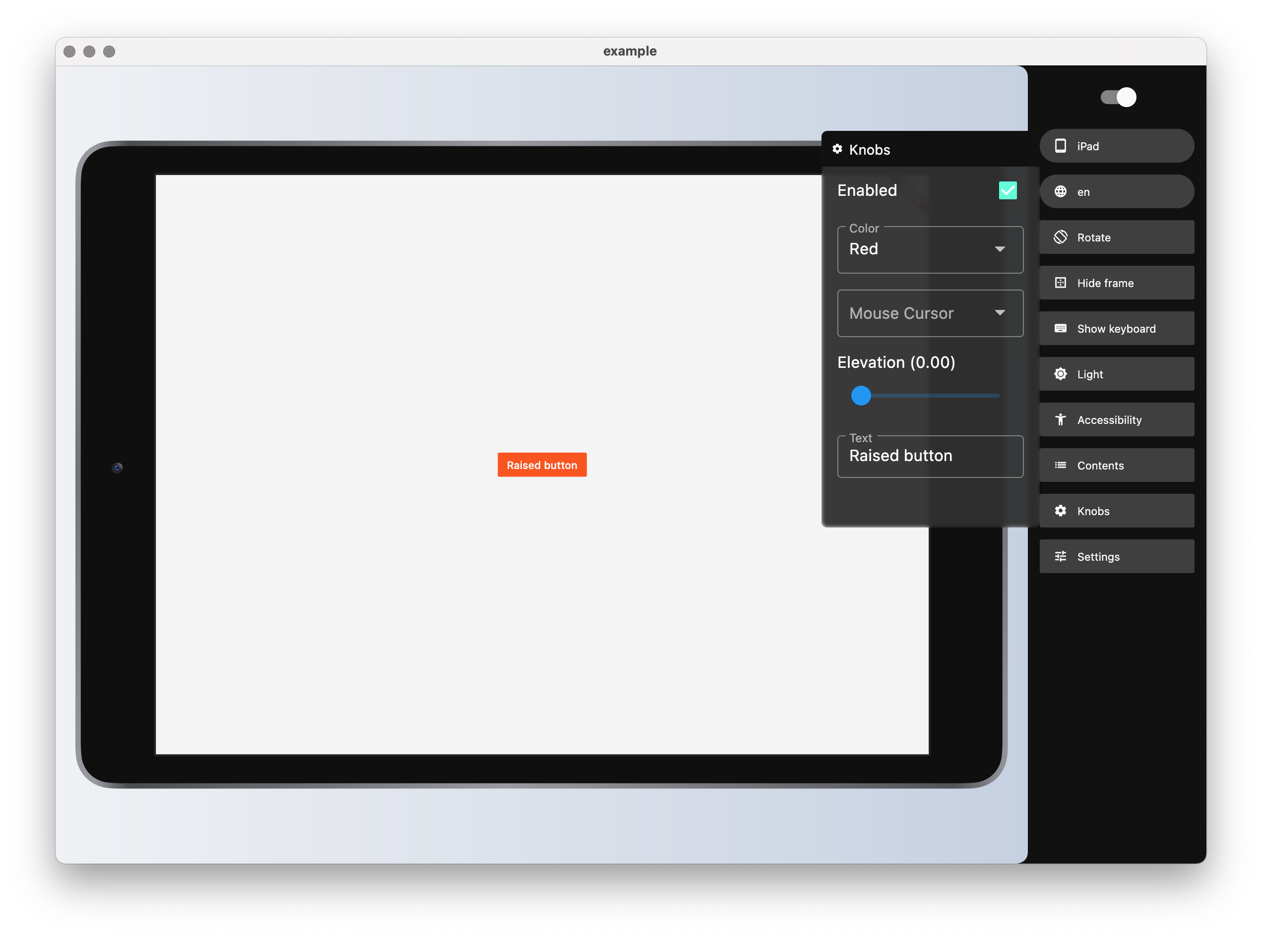 can be this plugin that adds Storybook to another package, device_preview, supporting contents and a knobs panel. With it you can achieve something like this: